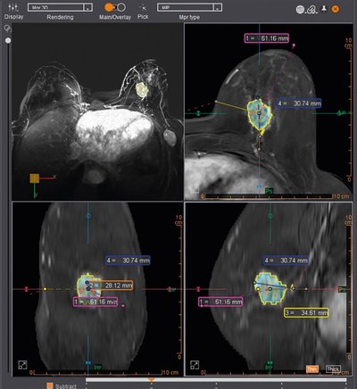 ابزار کامل breastscape شامل Automatic Segmentation ضایعه، محاسبه خودکار حجم، تصحیح حرکت، و گزارشدهی طبق استاندارد BI-RADS. افزونه BreastLoc برای برنامهریزی بیوپسی.